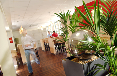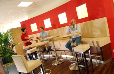 In unserer qSkills Lounge finden Sie Entspannung und können sich mit unterschiedlichen Getränken und frischem Obst versorgen. Offen und freundlich gestaltet, erwartet Sie in der Lounge ein kommunikativer Treffpunkt, in dem man einfach abschalten und Kraft tanken kann. Ein Ambiente, dass zum Verweilen, einem Lunch oder zu einer guten Tasse Kaffee einlädt.